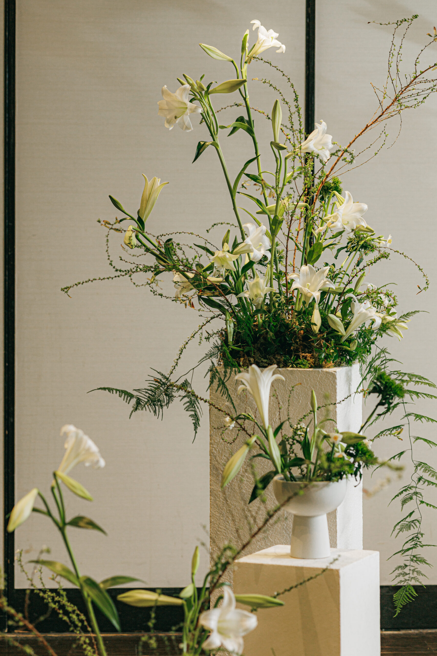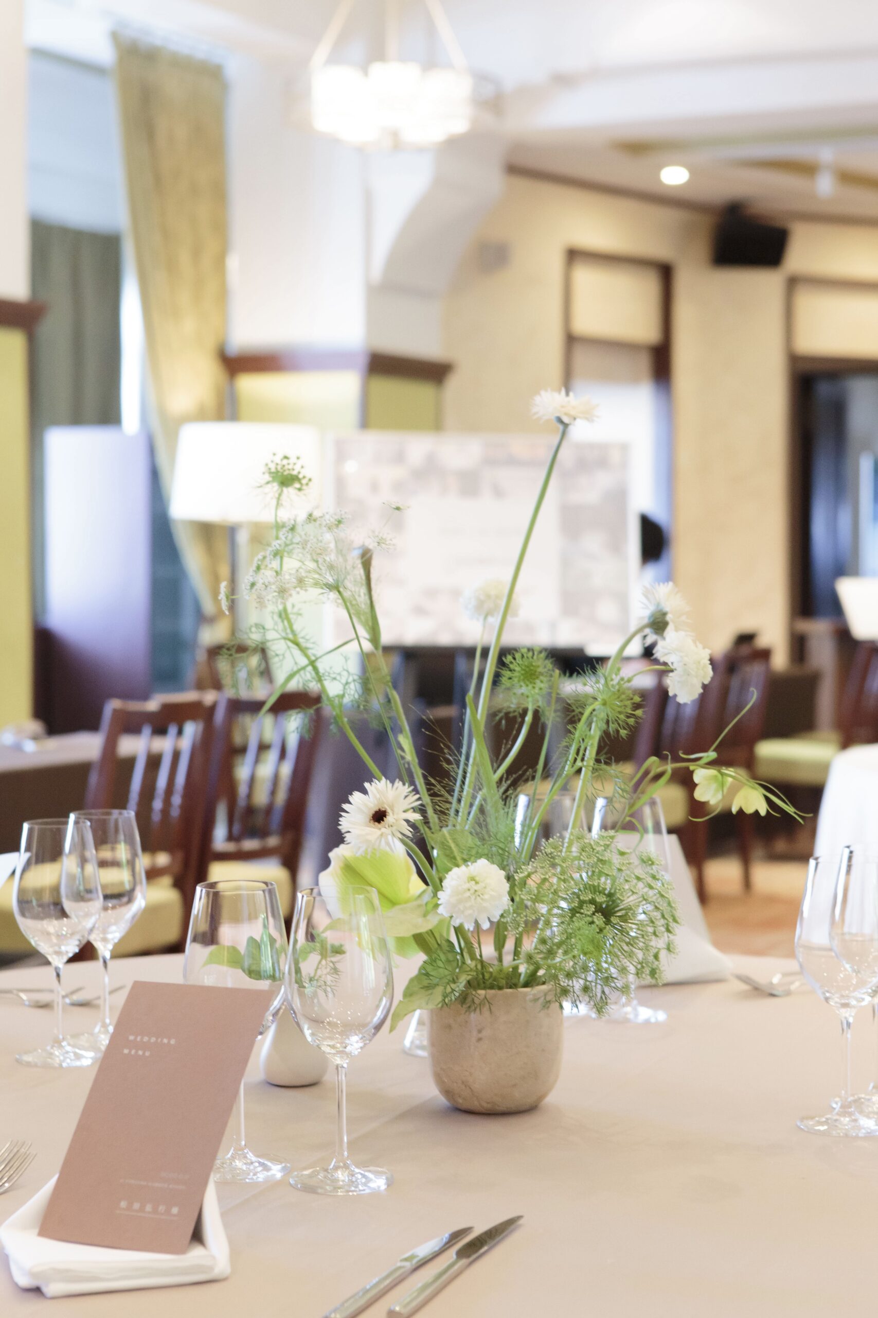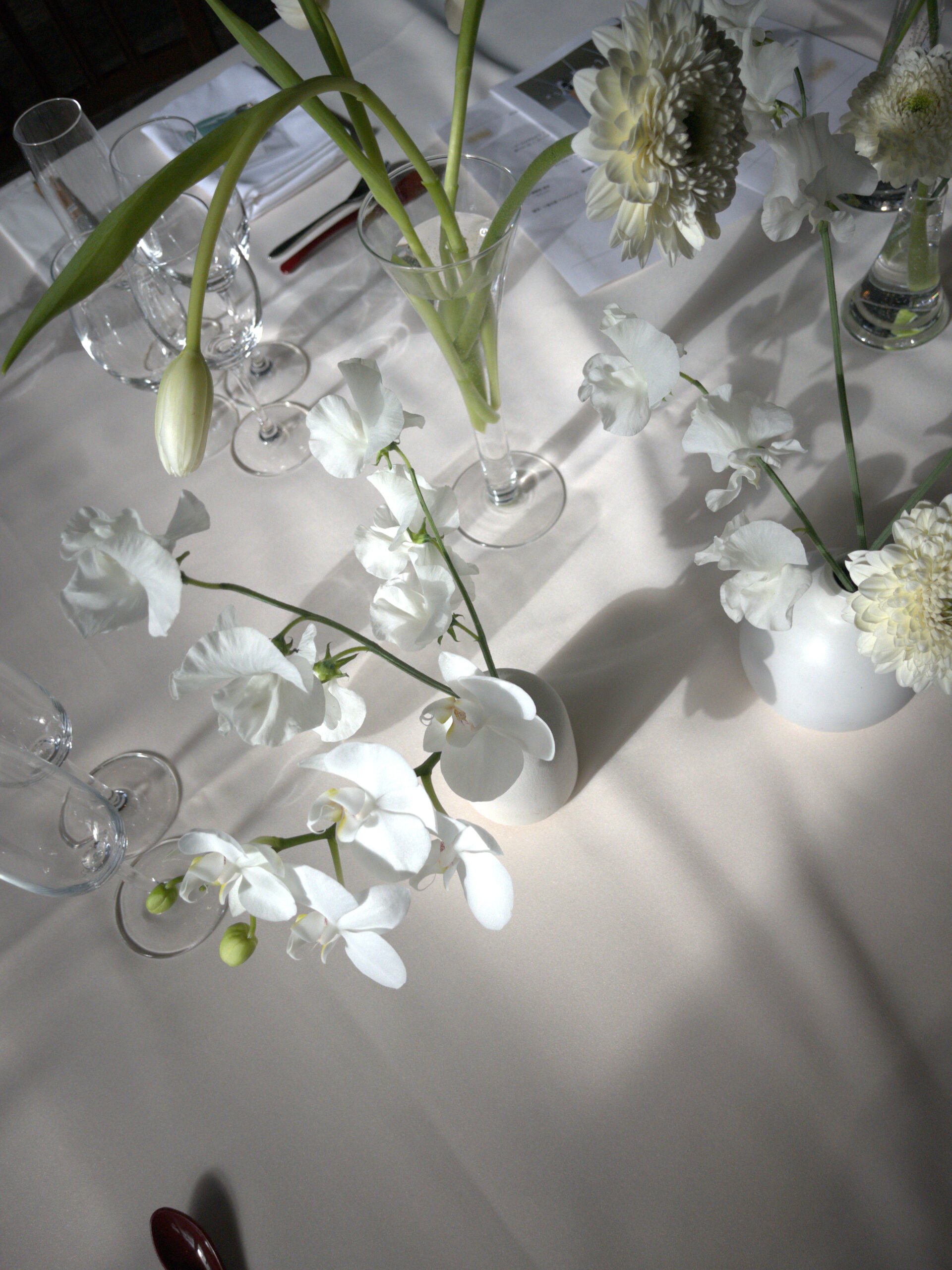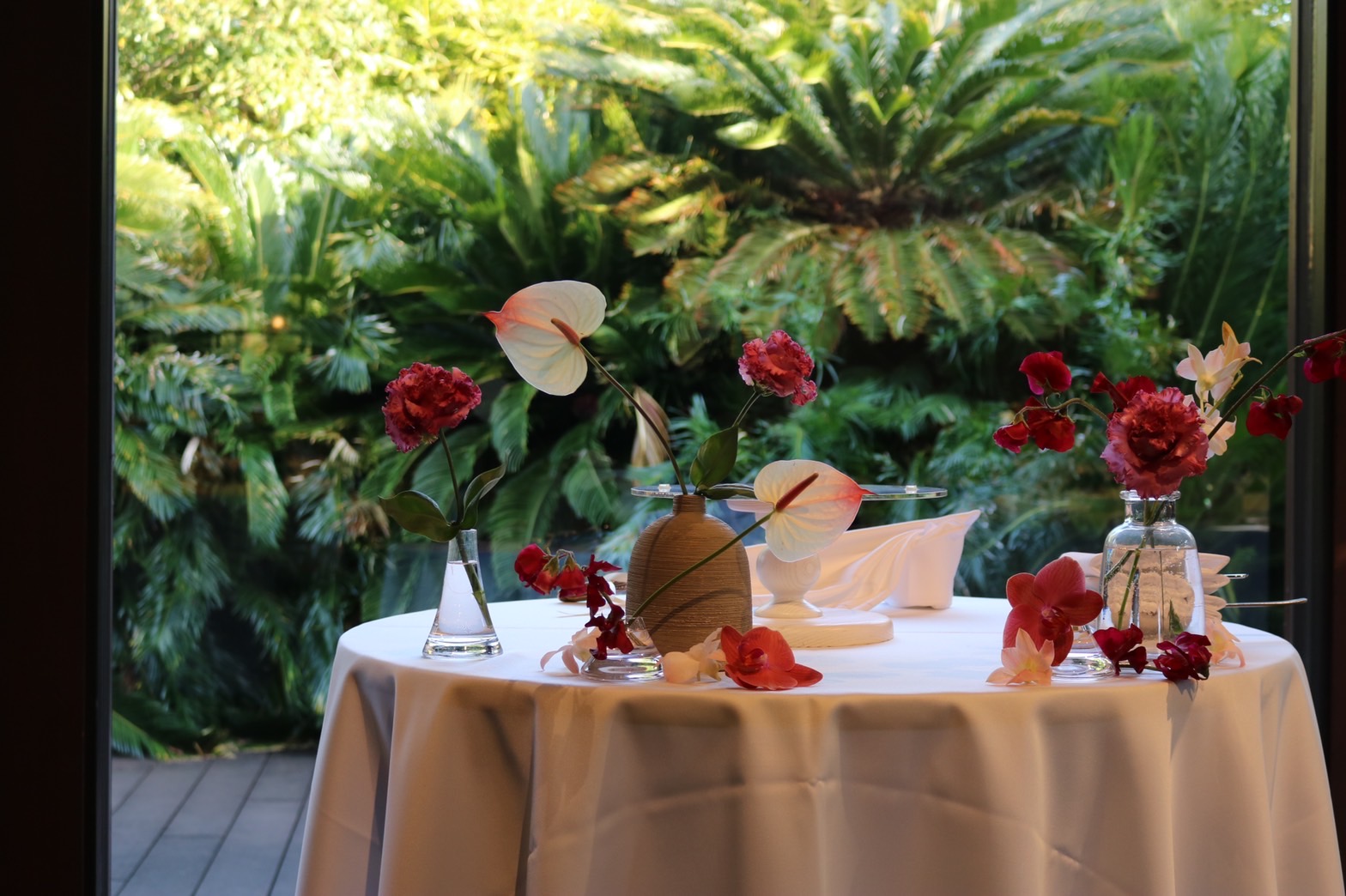 花の表情、さしこむ光、花嫁さまの纏う生地、その場の織りなす美しさを洗練された感性できりとり、全てを心地よく”心に触れる空間”へと創造する。