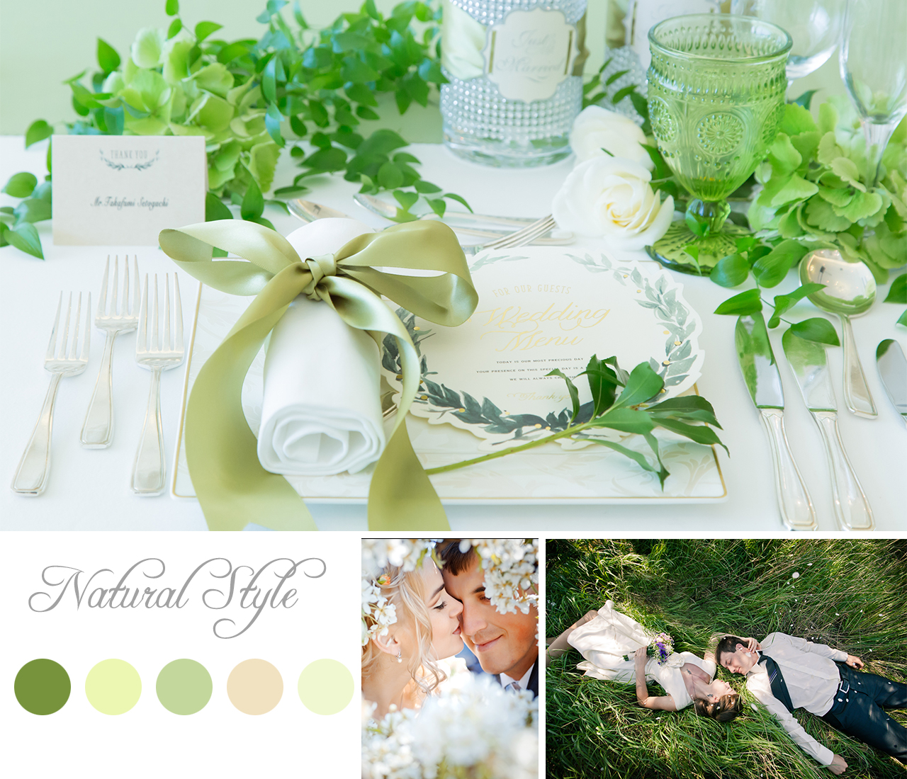 ホワイトとライトグリーンのグラデーションの爽やかなコーディネート